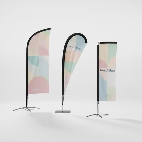 Devant un magasin situé dans une zone piétonne, devant le stand d'un salon-foire dans le hall ou devant le café de plage en bord de mer, les drapeaux de plage personnalisés capteront l'attention aussi bien en intérieur qu'en extérieur ! Vous pouvez commander chez nous votre « beachflag »en quatre tailles différentes : S, M, L et XL. Soit le système complet, donc avec plaque métallique comme pied, la tige et le drapeau de plage imprimé soit le drapeau seulement. Vous êtes ainsi toujours flexible et vous pouvez adapter ensuite à vos besoins le motif avec l'impression d'autres drapeaux. Le point fort de nos drapeaux de plage, c'est qu'ils sont lavables et repassables.