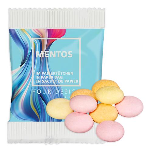 confiseries gélifiées ou du sucre effervescent en sachets pratiques. Ou distribuez des dragées à la menthe poivrée dans des boîtes cartonnées, distributeurs en plastique ou en tablettes avec votre publicité. Si vous souhaitez compléter votre entretien ou votre consultation sur le salon par un petit cadeau, remettez à votre interlocuteur un sac contenant un assortiment de sucreries ainsi que d'autres articles promotionnels.