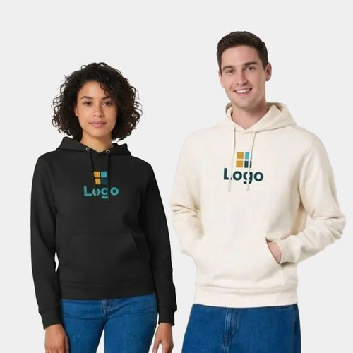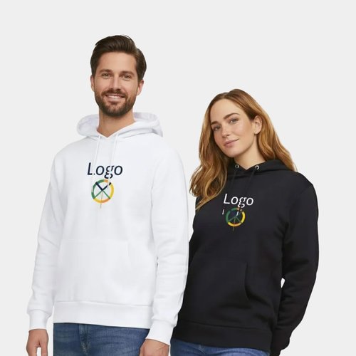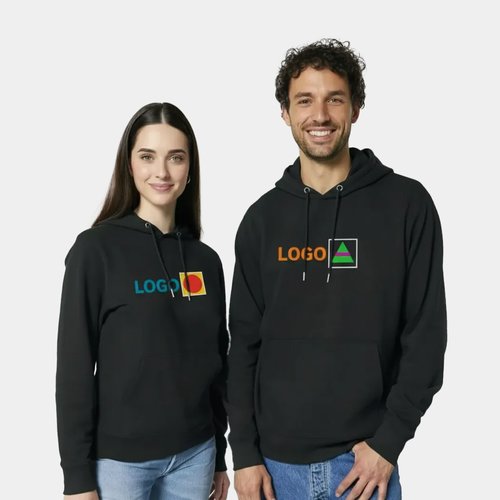 Un sweat à capuche est à la fois un élément chic et pratique. La capuche protège contre le vent et les intempéries et le tissu agréable du sweat à capuche garde le corps et la tête au chaud pendant la saison froide. Les hommes et les femmes se sentent tout aussi à l'aise dans un sweat à capuche conçu et imprimé individuellement, parce que ce vêtement offre une coupe ample très confortable. Les sweats à capuche apportent une touche de décontraction et de fraîcheur, ce qui en fait le support publicitaire idéal pour les occasions moins formelles et plus décontractées. Faites imprimer des sweats à capuche et portez-les avec vos employés, par exemple lors de la prochaine fête de l'automne ou de la journée portes ouvertes de votre entreprise.