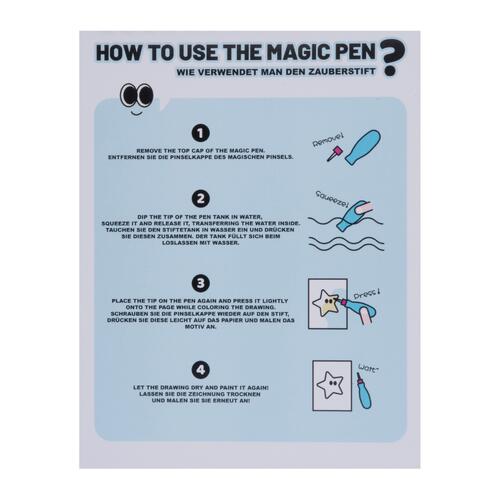 • Il suffit de verser de l'eau dans le pinceau et de commencer à peindre sur l'une des quatre faces avec les motifs d'animaux amusants