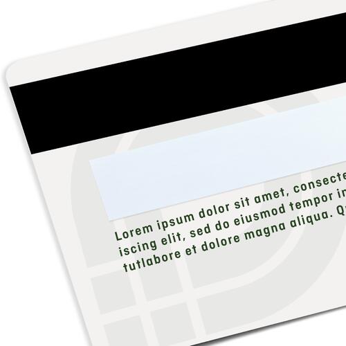 Exigences relatives aux fichiers d'impression Cartes en plastique avec espace signature et bande magnétique, 8,6 x 5,4 cm, impression recto/verso