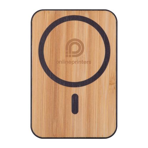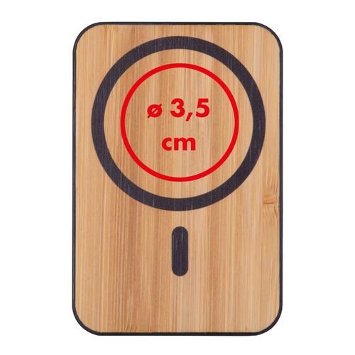 • Chargeur MagSafe de 5.000 mAh en plastique avec application de bambou sur le recto et finition caoutchouc sur le verso