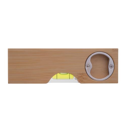 - Niveau à bulle en bambou avec échelle de mesure et décapsuleur