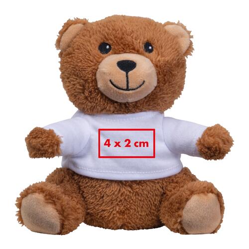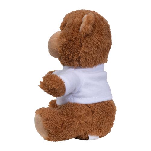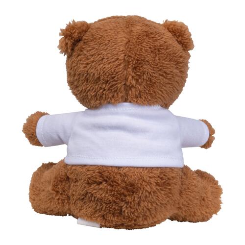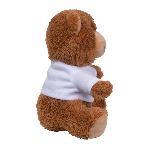 - Petit ours en peluche en polyester avec un T-shirt blanc en polyester recyclé