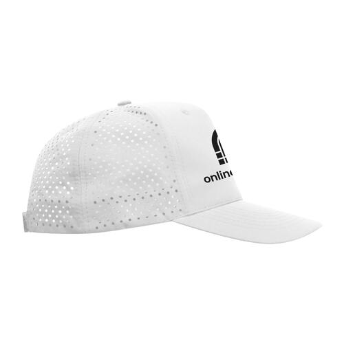 - Casquette baseball à 5 panneaux en polyester avec fermeture velcro à l'arrière de la tête et bande de transpiration à l'intérieur