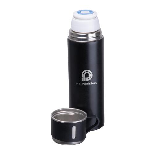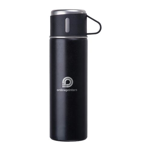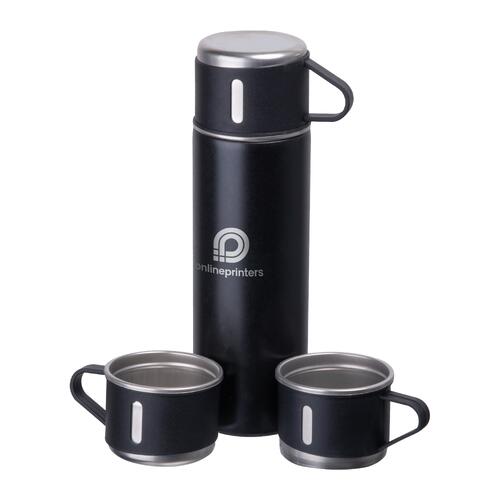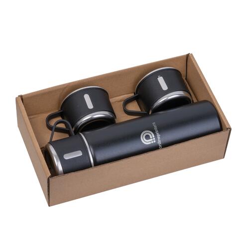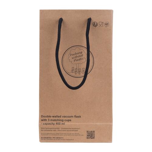 • Set de bouteilles isolantes composé d'une bouteille isolante à double paroi (400 ml) en acier inoxydable avec fermeture rapide et de trois gobelets (120 ml) en acier inoxydable avec revêtement en plastique