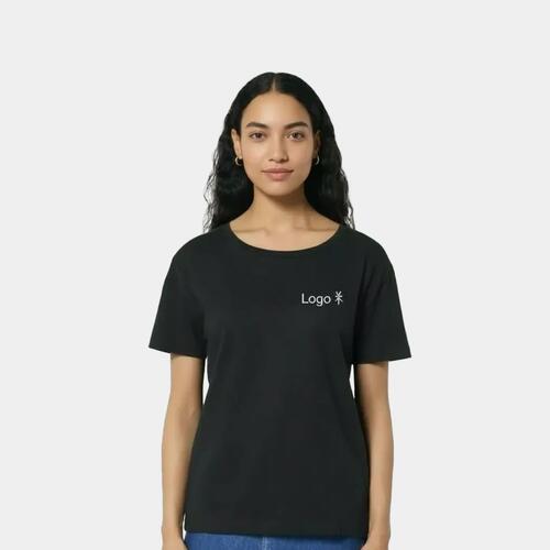 T-shirt noir en coton biologique pour femmes à manches courtes.